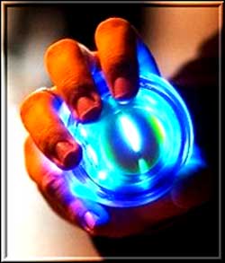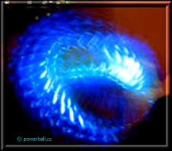 Hier ziet u het stralende licht effect van de powerball blue light.