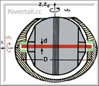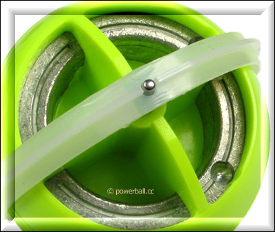 De powerball gyro ( ongeveer even groot als een tennisbal) bestaat uit een kunstof of metalen balvormige holle huls ( twee helften) Met daarin een zware rotor die tweemaal om zijn eigen as kan draaien. Gyroscopische principe. Als de rotor aan het draaien gebracht word zal deze door de wrijving op de as eigenlijk vooruit willen net als een gewoon wiel. Dit wil niet lukken daar deze opgesloten zit zodanig dat indien 1 kant iets meer weerstand heeft de ball dus ook om zijn eigen as gaat draaien in de behuizing. Die weerstand is nu wat we kunnen beinvloeden door een draaiende beweging te maken met de pols, geven we de rotor steeds een extra duwtje. En kunnen we afhankelijk van de kracht en ervaring een steeds hoger toerental bereiken. Door de middelpunt vliedende kracht vergelijkbaar met: een glas water ronddraaien met ijsblokjes of een fietswiel bij de as vasthouden terwijl deze ronddraaid trachten te kantelen, onstaan de krachten die dus gebruikt worden om het trainings maar ook verrassing effekt bij de powerball te generen.